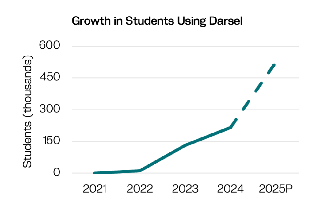 Darsel has great momentum: they’ve gone from 100 schools in Jordan in 2022 to 2,700+ schools across Jordan, India, and Nigeria in 2025. They started with 7th grade but are expanding from 4th to 9th grade to build a stronger math foundation. The goal is uninterrupted math learning that compounds over the years. They’ve got persuasive early impact evidence, but even more important is the way in which experimentation and iteration are at the heart of their operations. We think they’re an excellent early-stage bet.